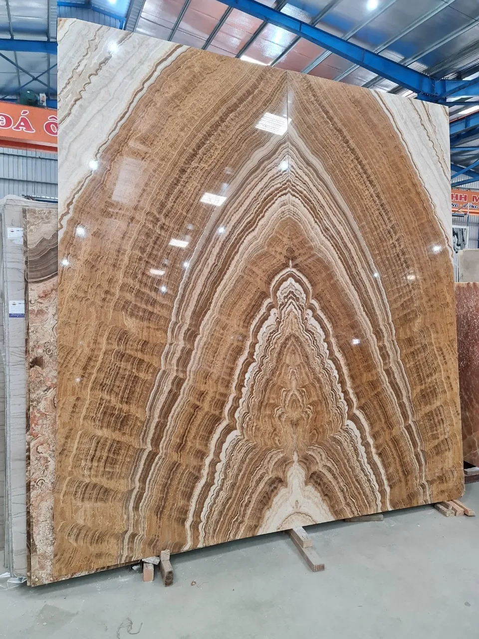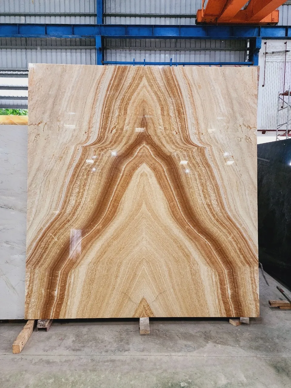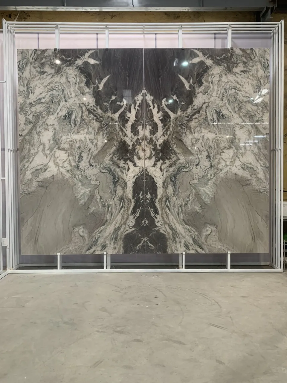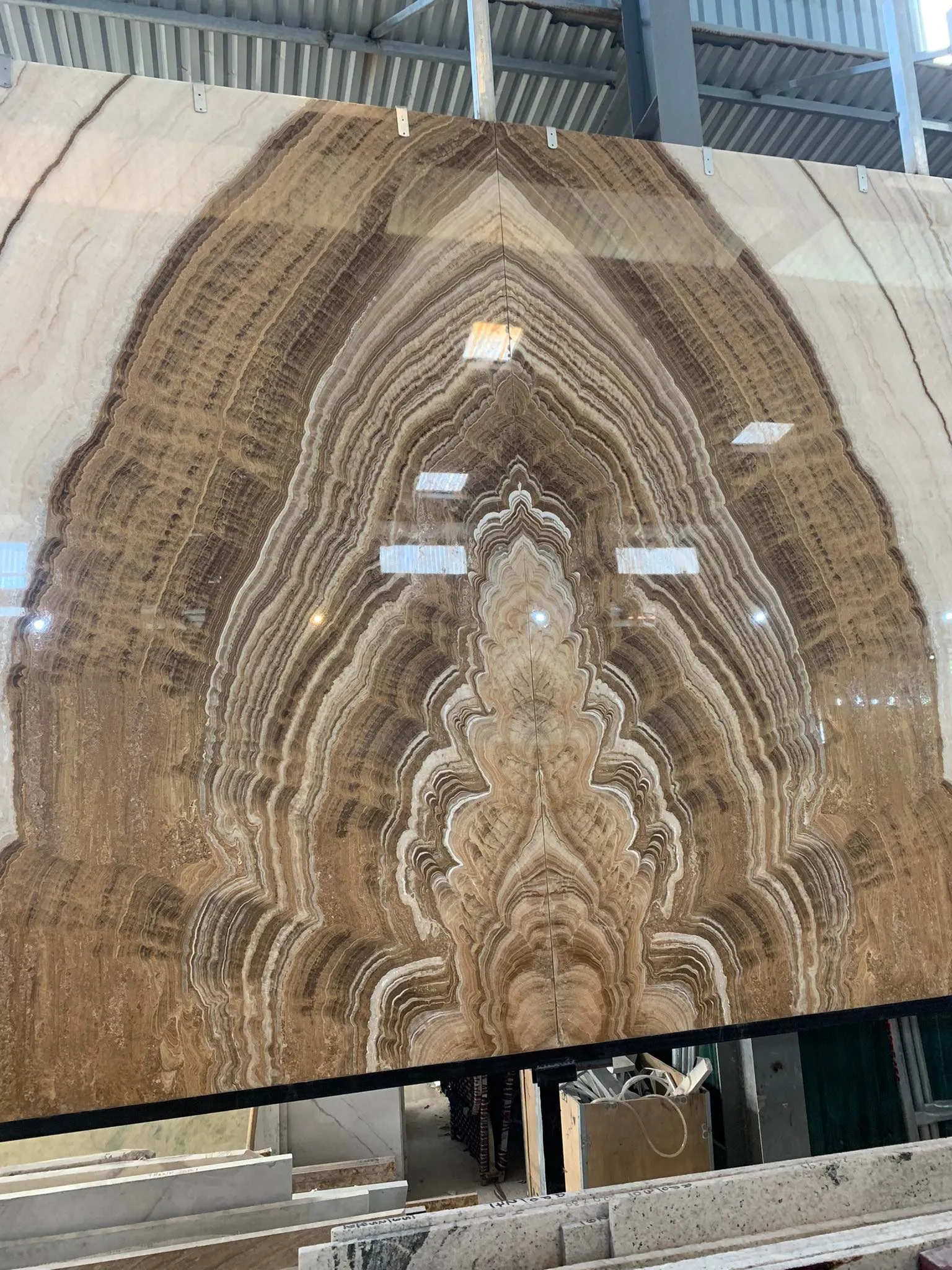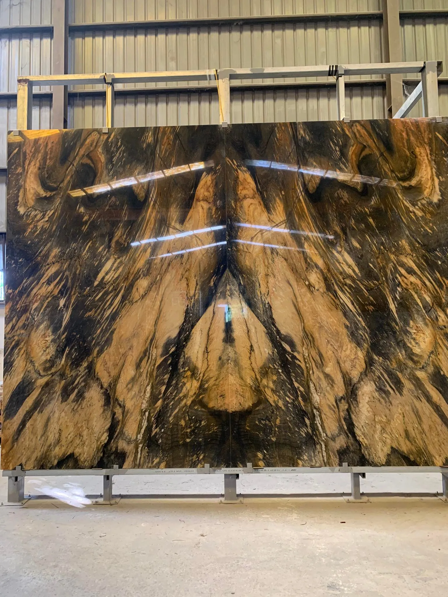 Từ khối đá khai thác tự nhiên được đưa đến xưởng cắt thành từng tấm slab với kích thước đều nhau. Tấm Bookmatch sẽ được đánh bóng mặt đối diện để khi tiến hành đặt cạnh nhau và mở ra như 1 cuốn sách, họ sẽ thu được hình ảnh phản chiếu của 1 tấm slab.