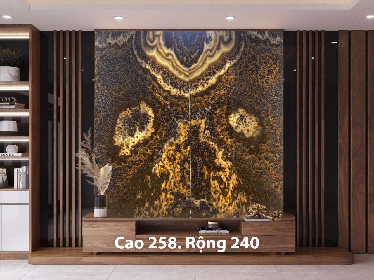 Là một vẻ đẹp hiếm có, tạo ra hiệu ứng đặc biệt, hình ảnh đặc sắc, tranh đá tự nhiên đối xứng Bookmatch thường được đặt ở các khu vực có diện tích rộng lớn. Nếu là một nhà thiết kế có con mắt tinh xảo thì hẳn vị trí phòng khách, phòng bếp, mảng tưởng dọc hành lang… Những vị trí tường rộng, trống cần có điểm nhấn, cần khối hình học thông minh hay trừu tượng thì Bookmatch là lựa chọn hoàn hảo.