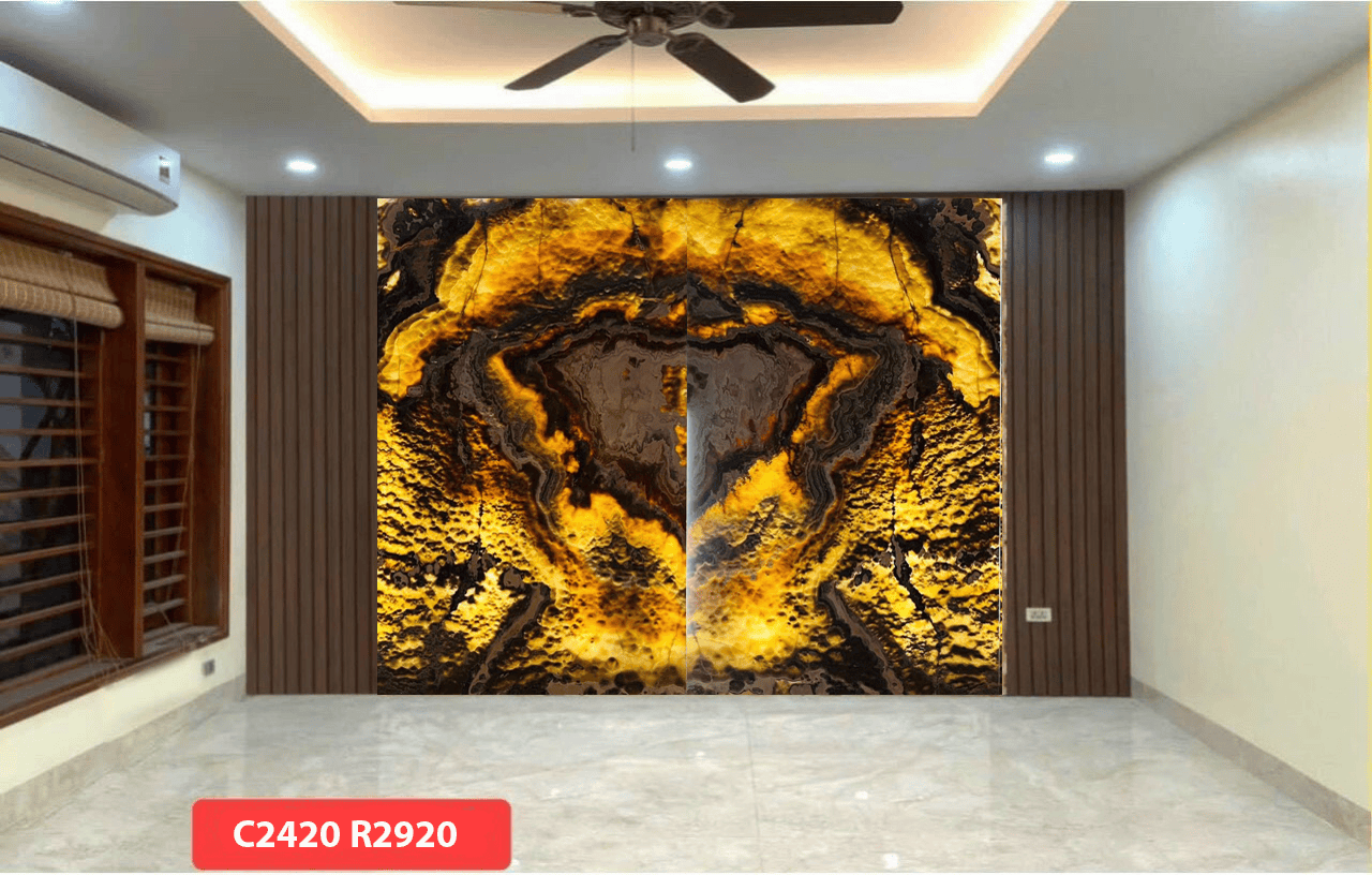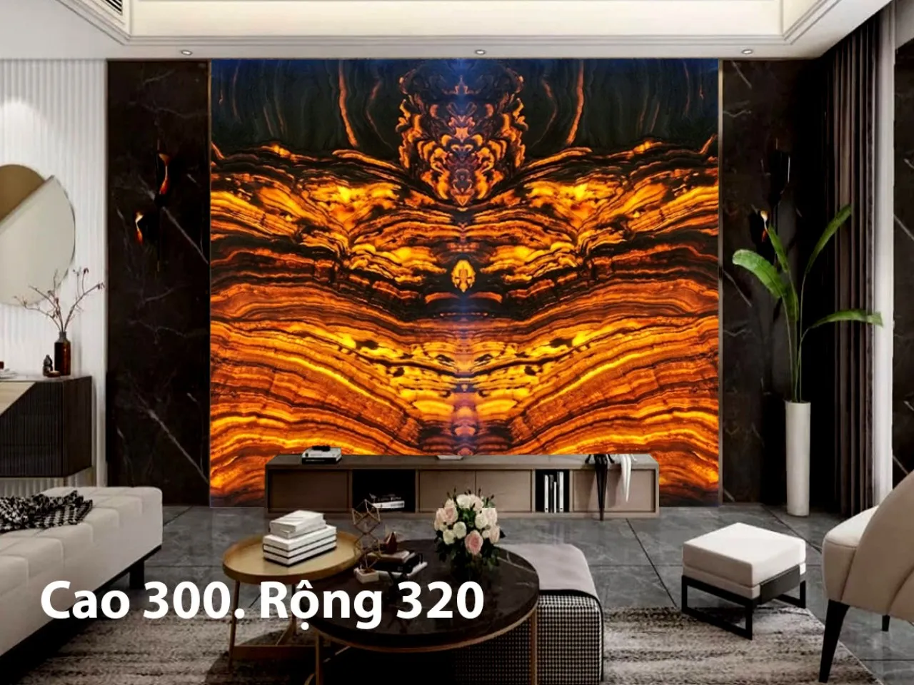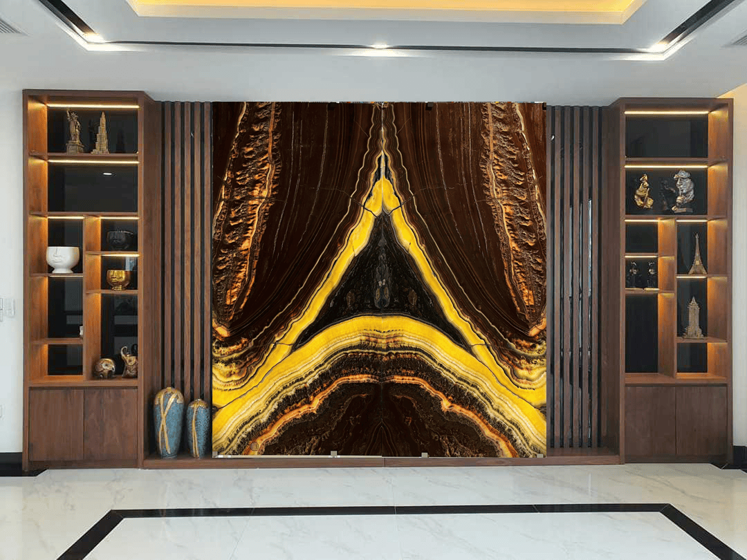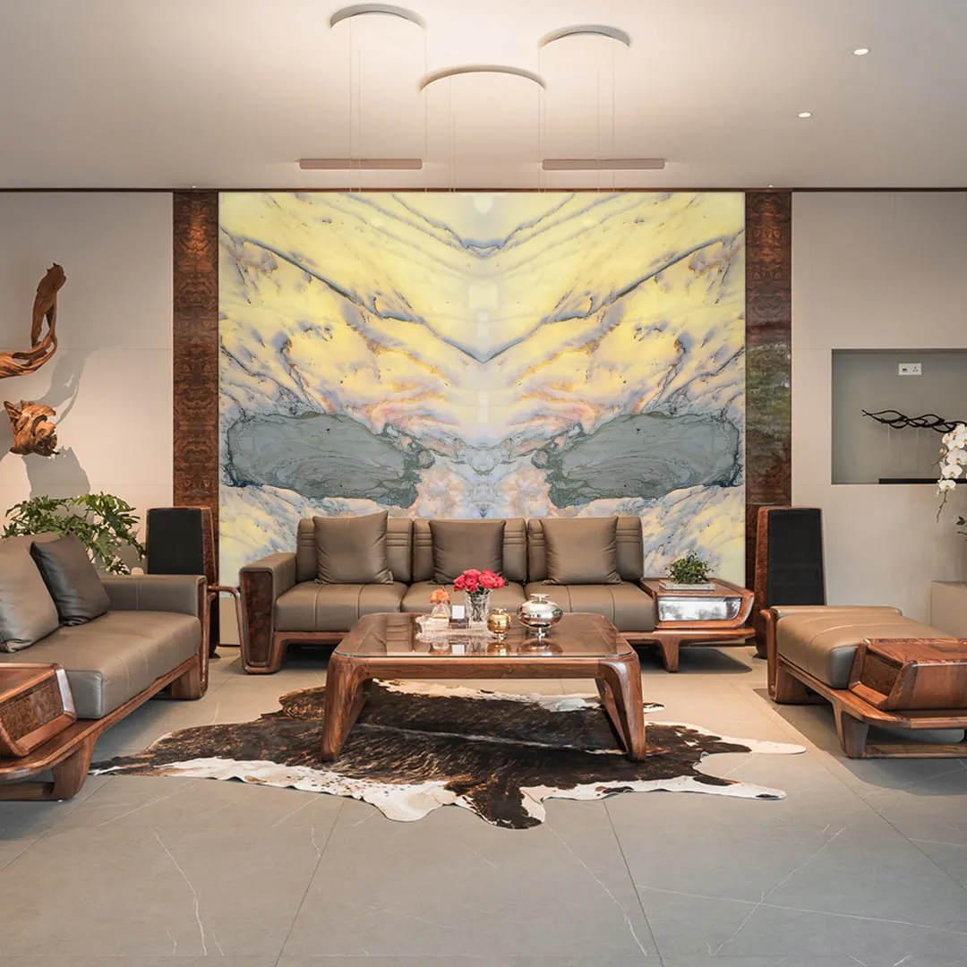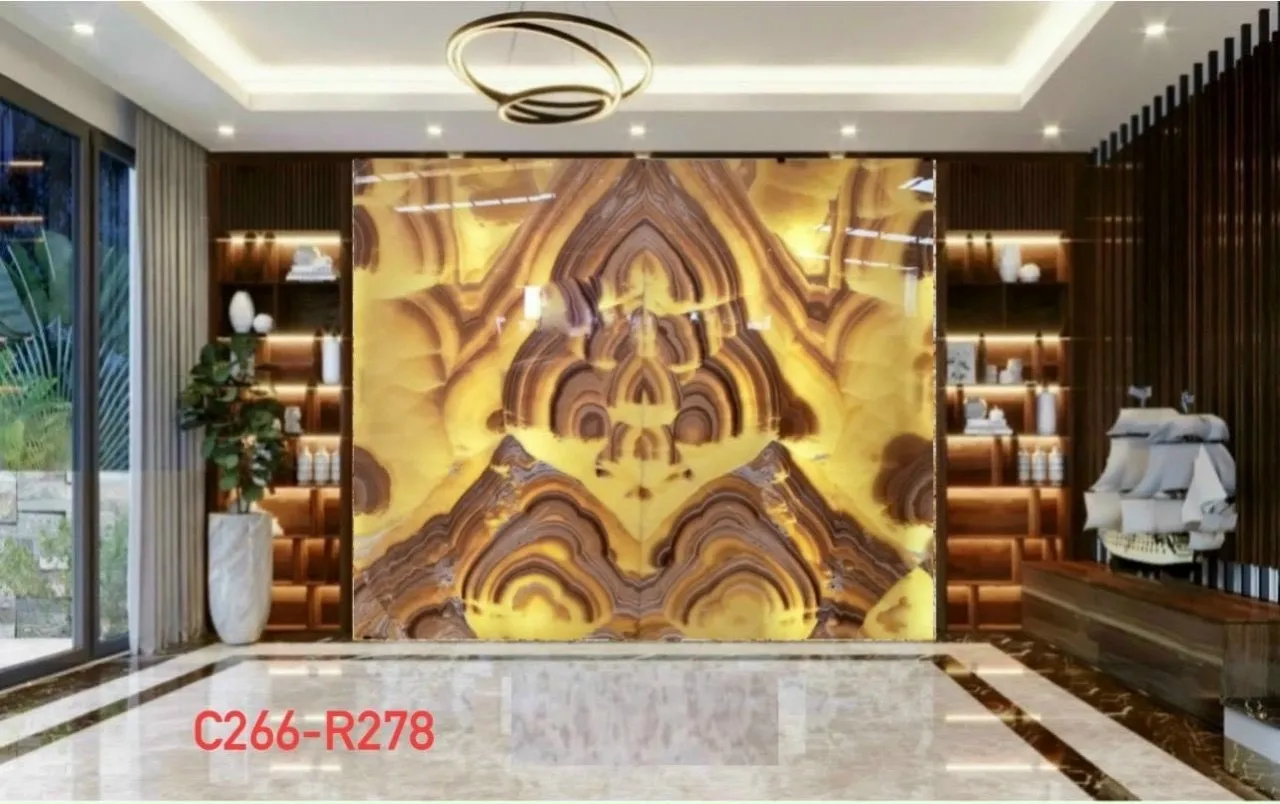Ngoài ra đá tự nhiên xuyên sáng Onyx còn được cắt làm tranh đá cho phòng khách, phòng trưng bầy,…trong biệt thự, nhà hàng cao cấp.