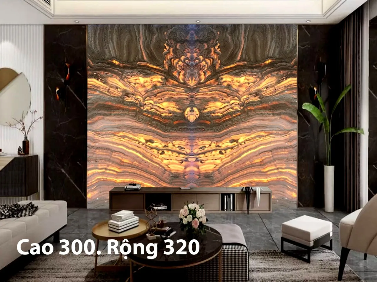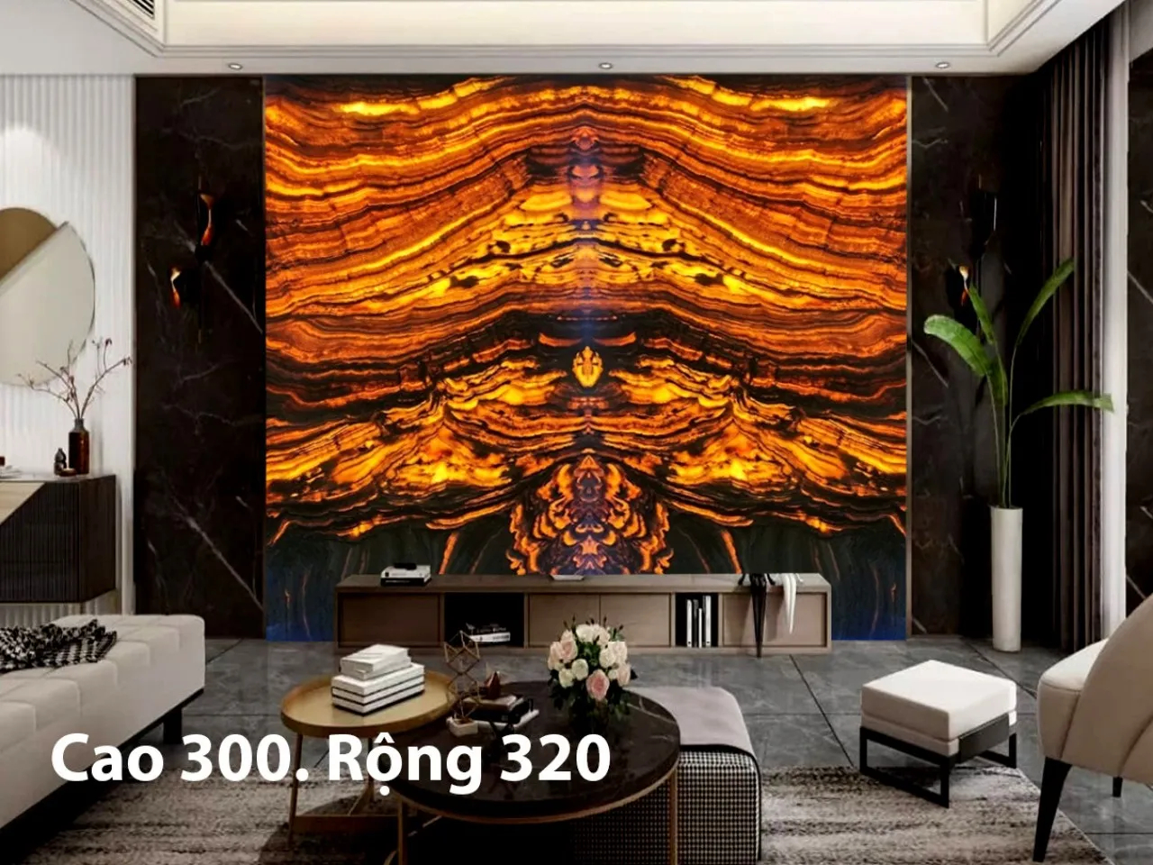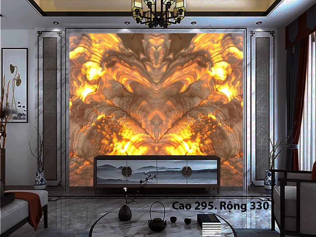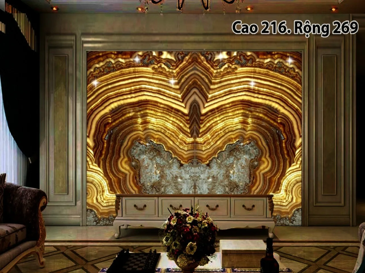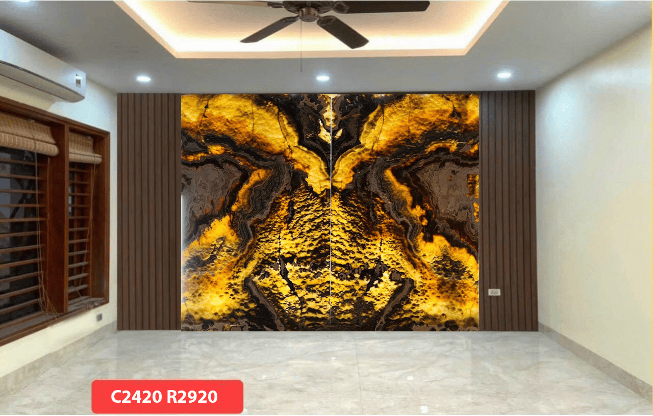 Ngoài ra đá tự nhiên xuyên sáng Onyx còn được cắt làm tranh đá cho phòng khách, phòng trưng bầy,…trong biệt thự, nhà hàng cao cấp.
