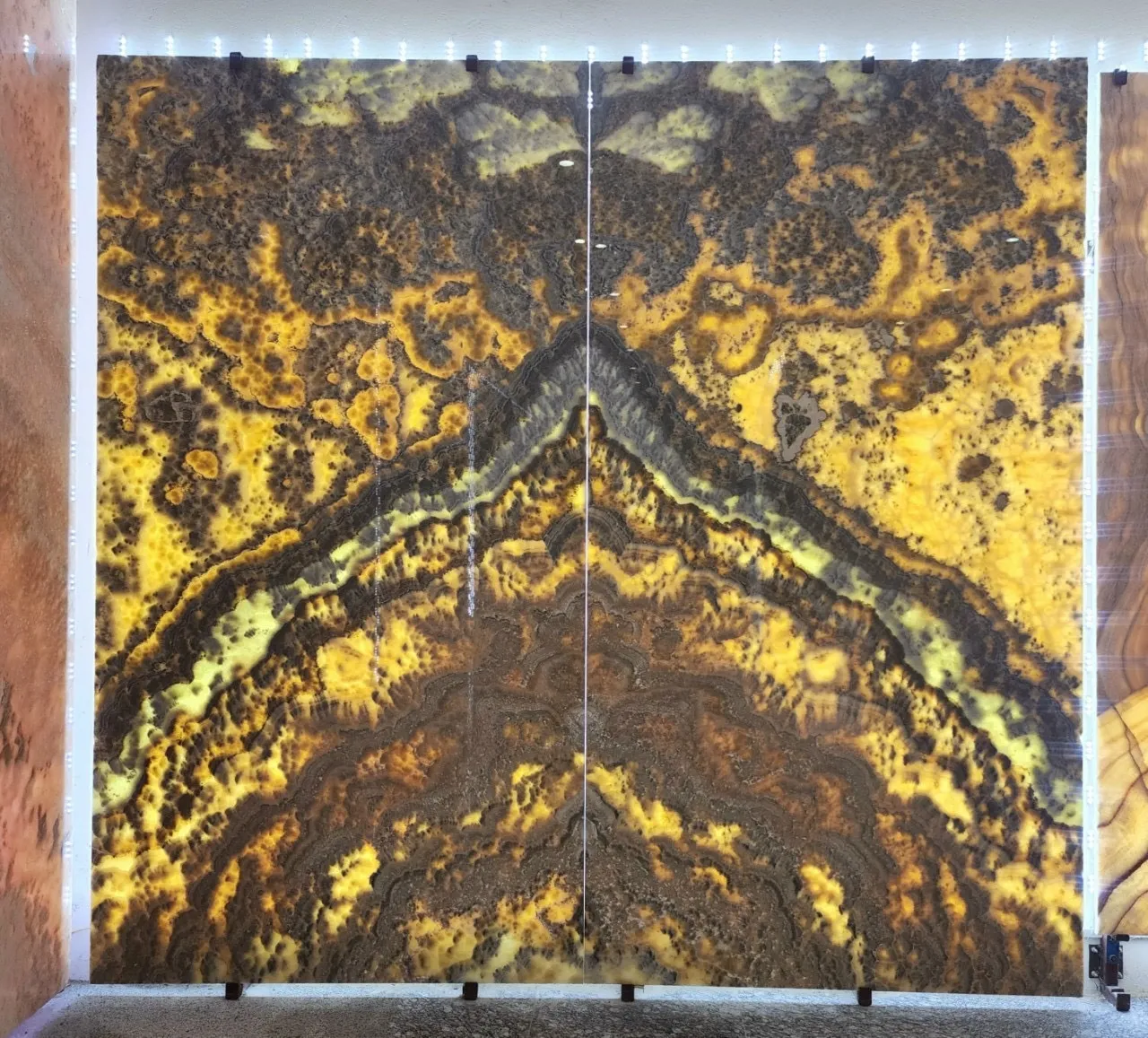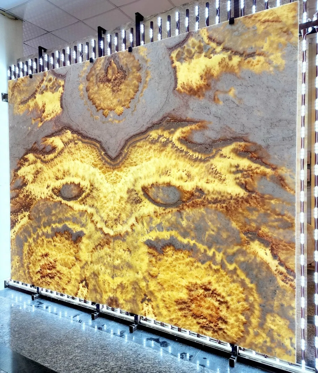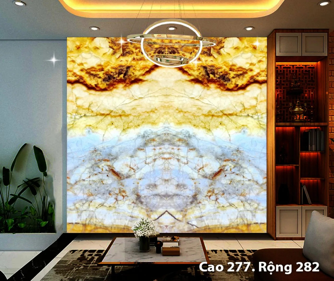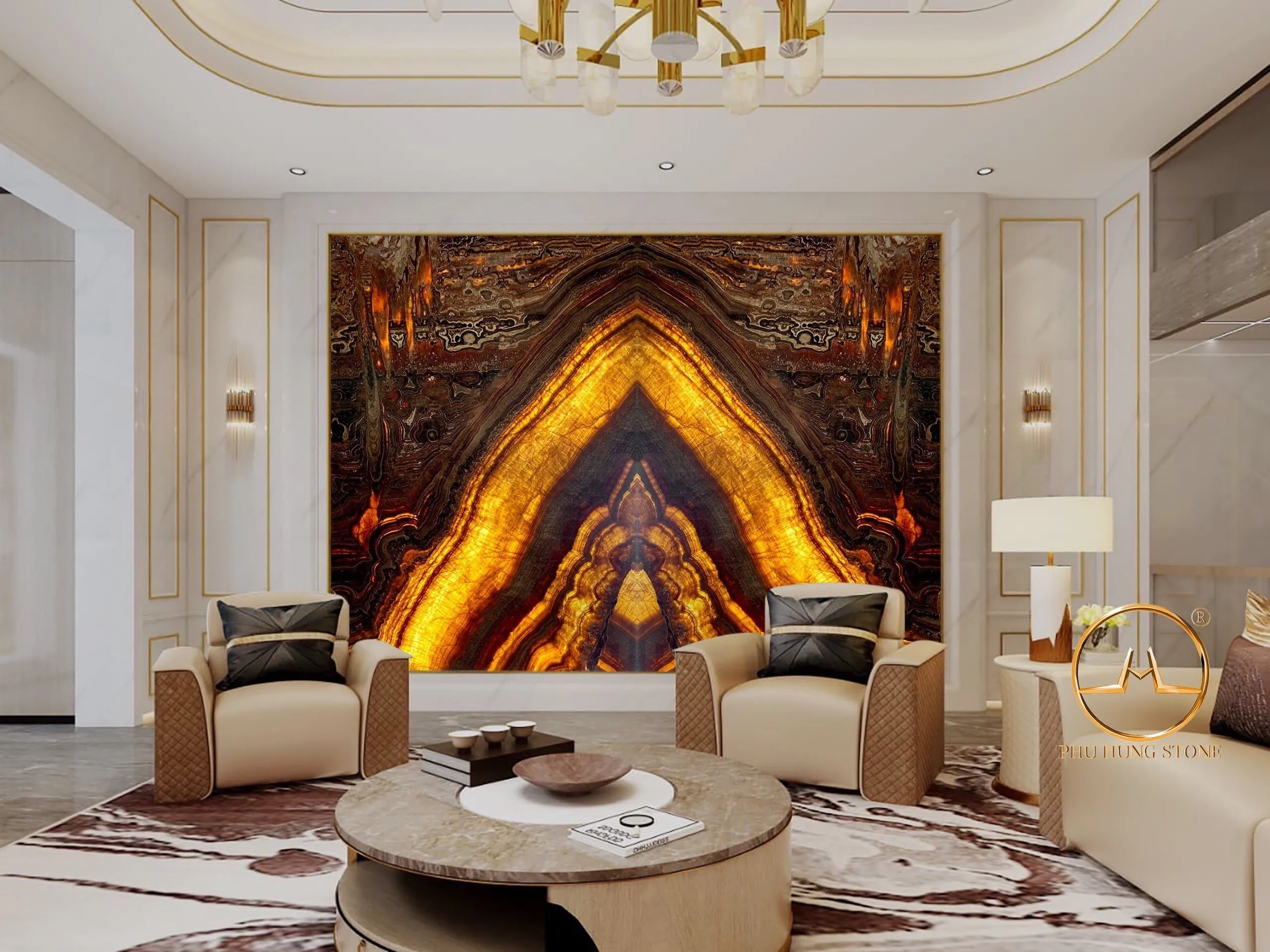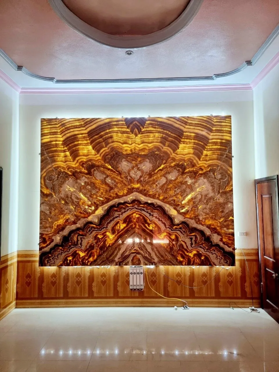 Ngoài ra đá tự nhiên xuyên sáng Onyx còn được cắt làm tranh đá cho phòng khách, phòng trưng bầy,…trong biệt thự, nhà hàng cao cấp.